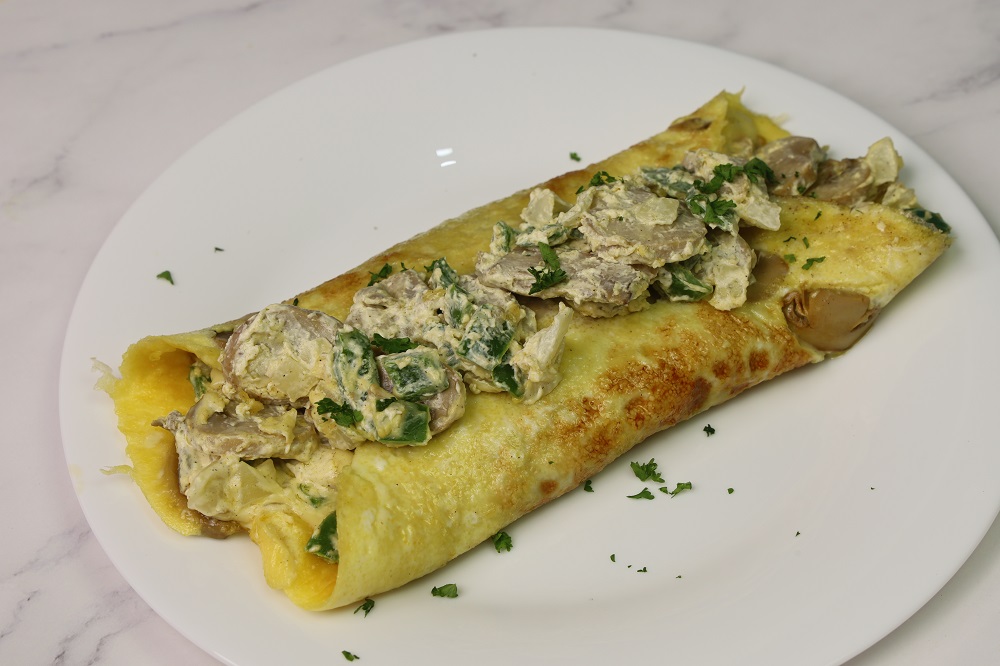 - Carefully place the mushroom and cheese omelette onto a plate